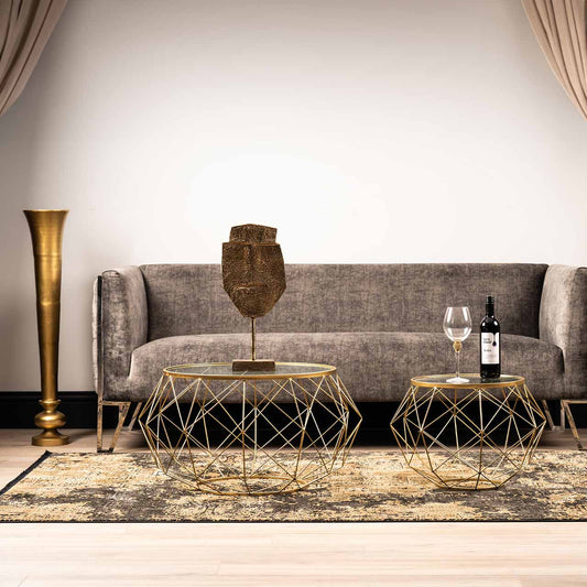 Out of Stock - Message to Pre-OrderSet of 2 Gold Metal Mesh Coffee Table with Glass Top