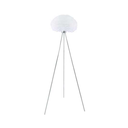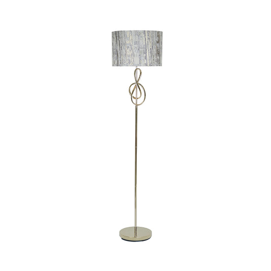159cm Chrome Swirl Floor Lamp 2T Black and White Linen Shade Silver Inside - Dual Plug