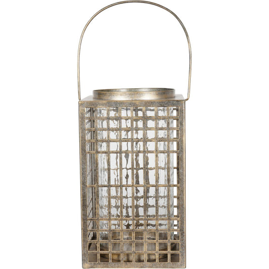 Out of Stock - Message to Pre-OrderBarossa Fretwork Square Lantern in Aged Gold with Glass Flute 33cm