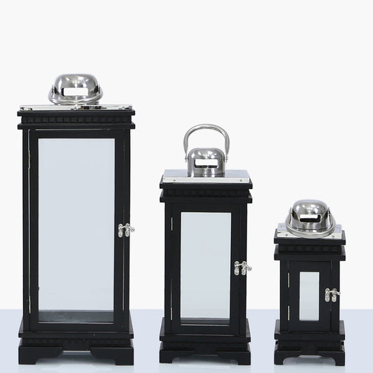 Out of Stock - Message to Pre-OrderSet Of 3 Black And Chrome Wood Lanterns