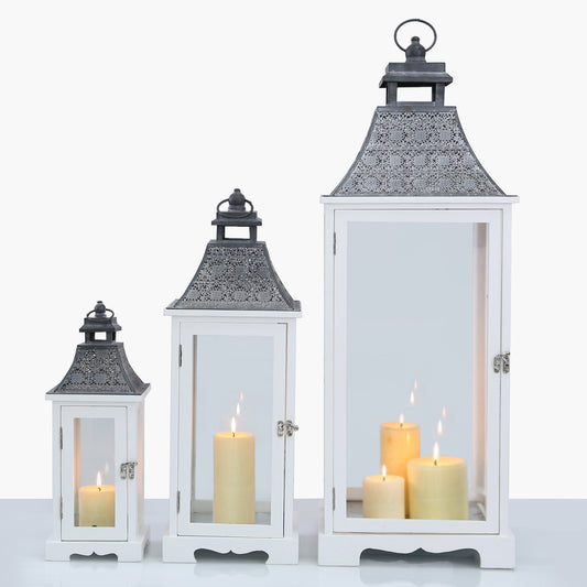 Out of Stock - Message to Pre-OrderSet Of 3 White And Grey Wood Lanterns
