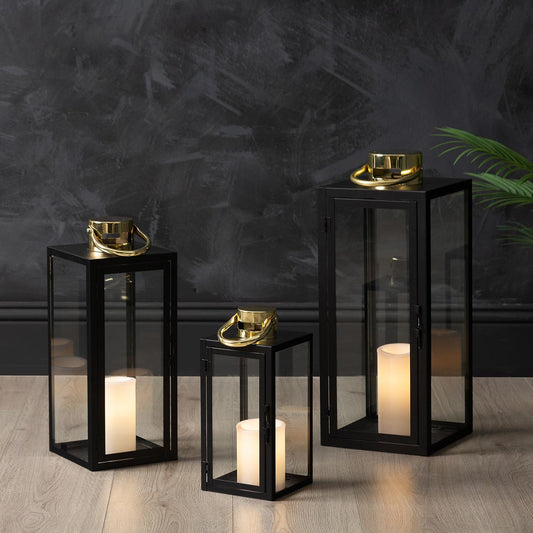 Out of Stock - Message to Pre-OrderSet of 3 Black and Gold Steel Lanterns