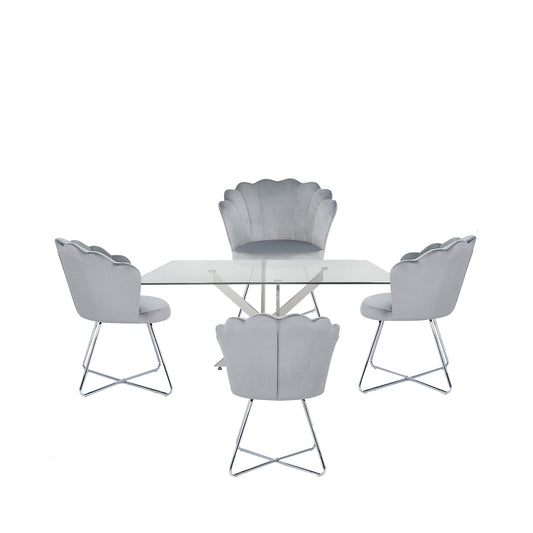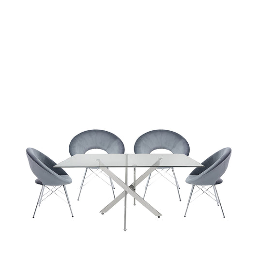 Out of Stock - Message to Pre-OrderLeo Dining Table Grey & 4 Dining Chairs