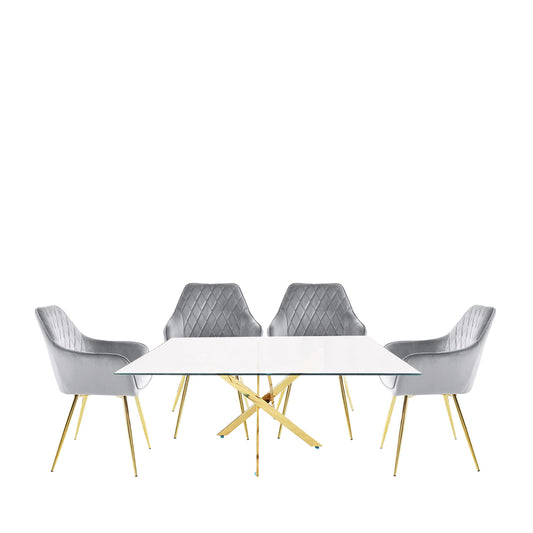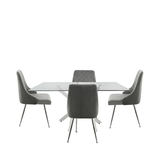 Out of Stock - Message to Pre-OrderNova 160cm Rect Dining Table And 4 Grey Tiffany Chairs