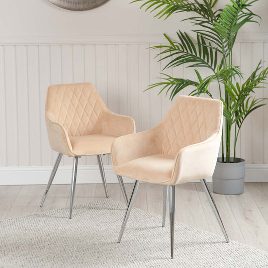 Quinn Dining Chair Champagne Velvet With Chrome Legs