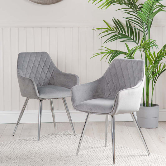 Out of Stock - Message to Pre-OrderQuinn Dining Chair Grey Velvet With Chrome Legs