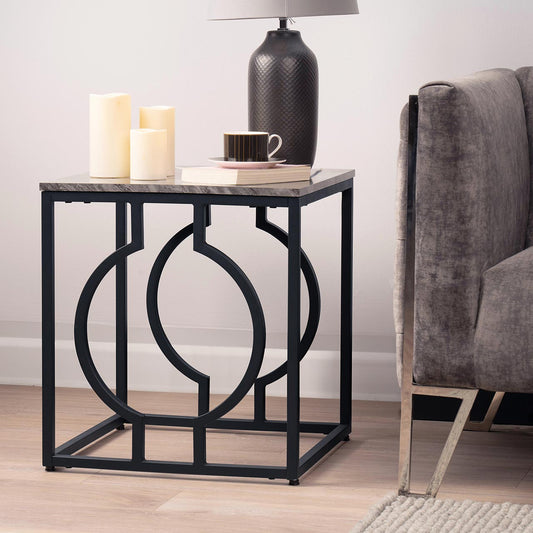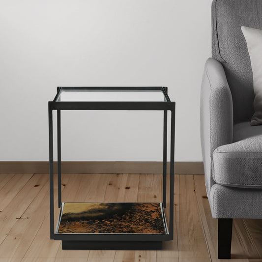 Out of Stock - Message to Pre-OrderCohen Black Gunmetal Steel Tubes and Smoke Glass Top End Table - Black Bottom Glass
