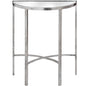 With its clean-cut looks and handy size, this side table is the perfect place to set down a drink whilst relaxing in a favourite armchair. A mirrored top and slimline brushed silver legs, braced by a cross detail give this understated item a timeless elegance that will fit with a variety of décor.