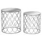 Set of Two Arabesque Silver Foil Mirrored Side Tables