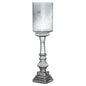 Silver Smoked Midnight Glass Top Tall Candle Pillar Holder