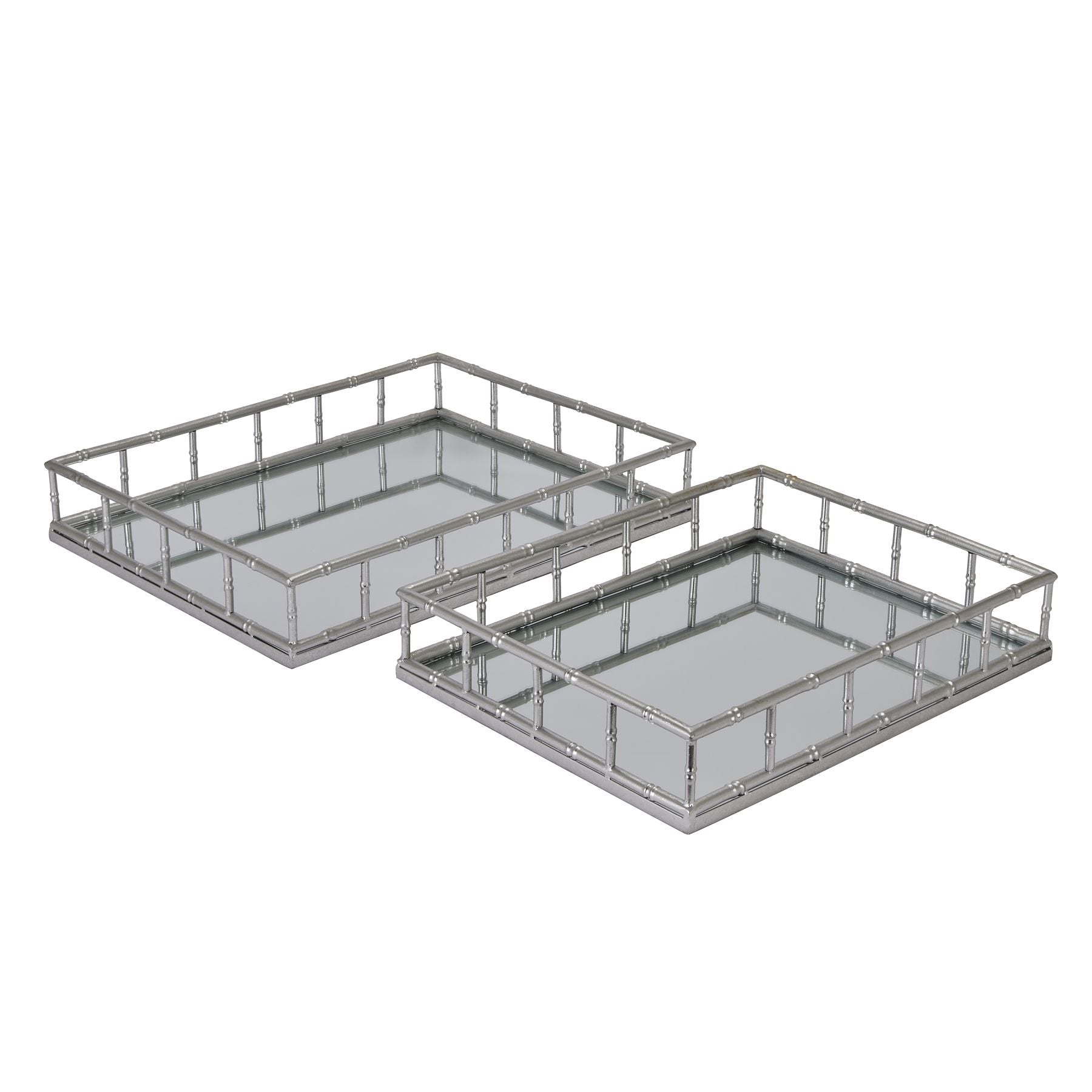 These are the Set of Two Detailed Rectangular Trays. They would make a beautiful and practical addition to any home, hotel or venue. With a bamboo effect pattern in a gold finish, these trays have a hint of the golden age which will add an instant element of luxury and grandeur to any interior.