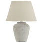 Introducing the Darcy Antique White Table Lamp With Linen Shade, a sleek and sophisticated addition to any space. Crafted with exquisite attention to detail, this lamp boasts a textured stone effect finish in an antique white hue.