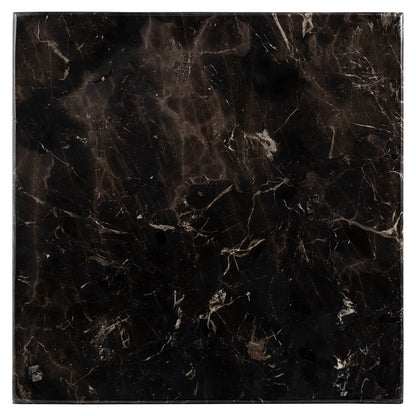 Cette table de bistrot de la collection Carlten se distingue par son plateau carré en marbre noir. La surface riche et sombre contraste magnifiquement avec le pied métallique, faisant d'elle un meuble remarquable qui se démarquera dans tout bistro ou restaurant.