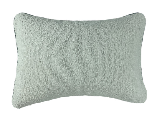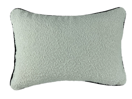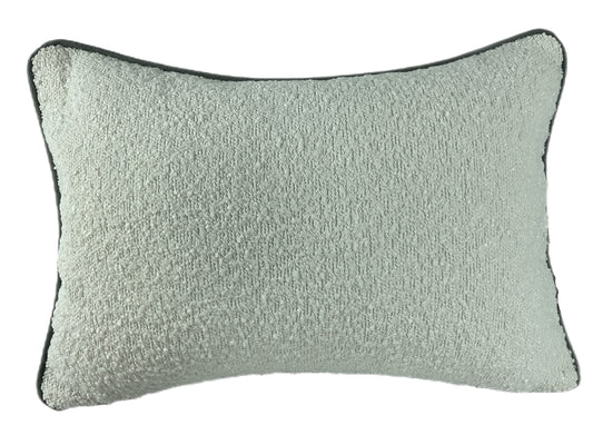 DOUBLE SIDED BOUCLE CUSHION WITH CONTRAST SEAFOAM PIPING 30 X 45