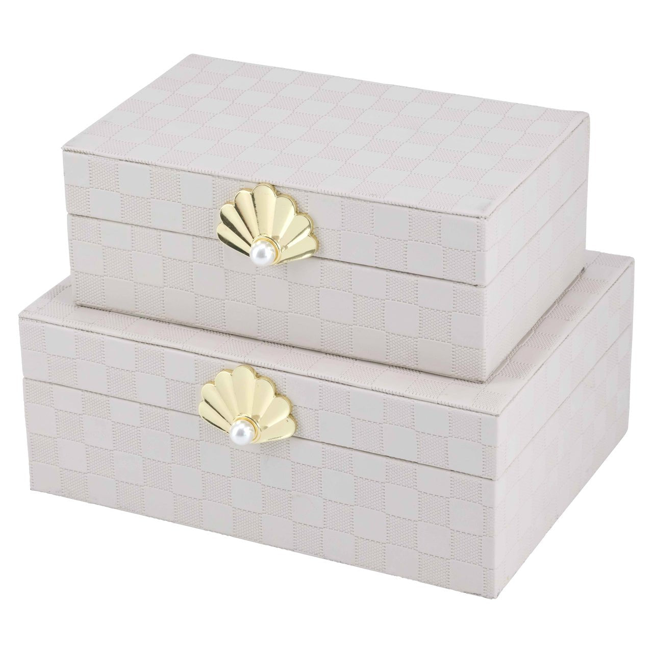 This storage box combines a light ivory colour with a refined appearance. The timeless design creates an elegant addition to a cabinet, shelf or table. It also offers a practical way to store small items neatly.