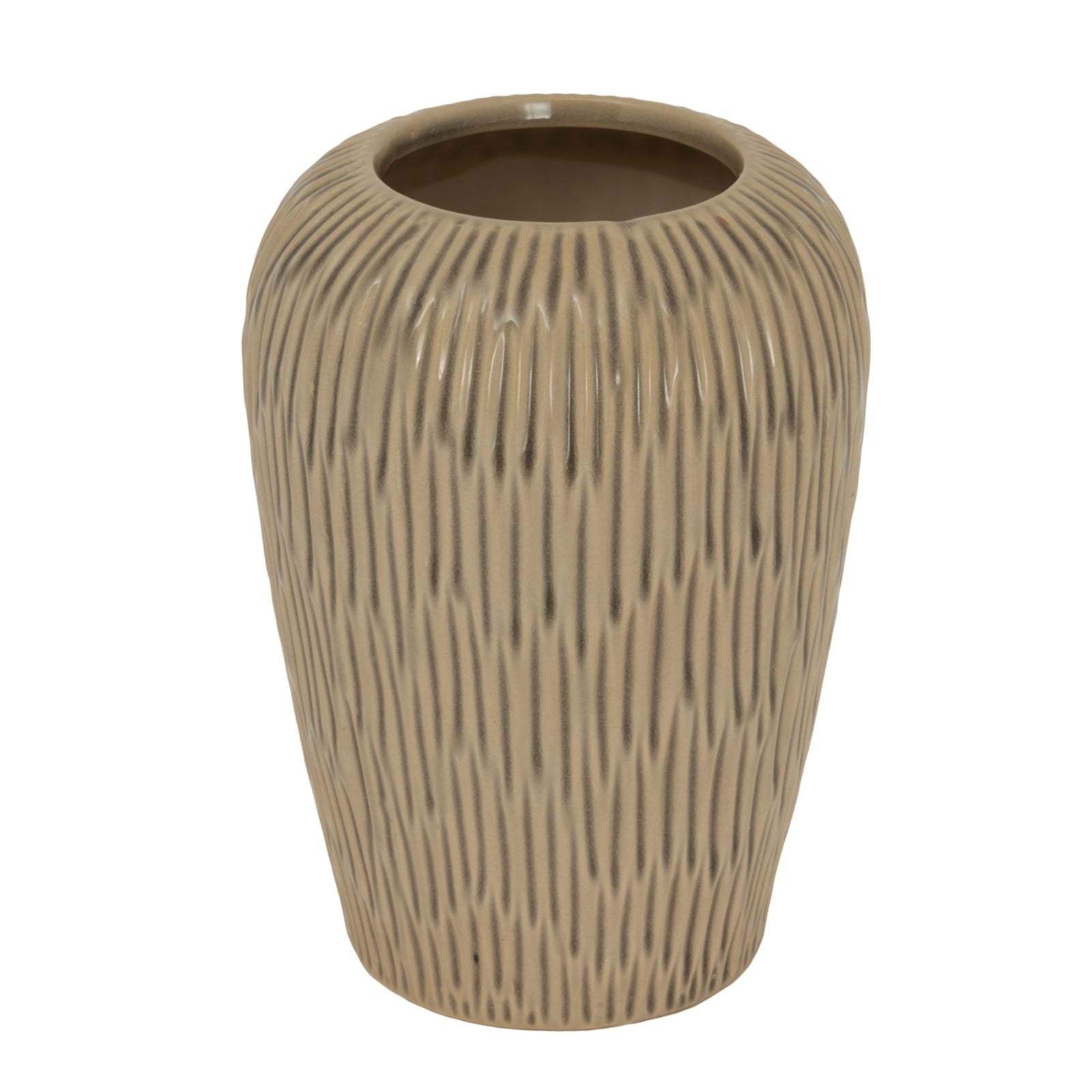 Showcasing modern refinement, this medium vase from the Pallida Collection demonstrates artistic innovation through its distinctive flecked surface treatment. The intricate texturing creates an interplay of light and shadow, while the balanced proportions offer a contemporary interpretation of classical form. The subtle variations in the flecked pattern make each piece uniquely appealing, reflecting light differently as viewing angles change. This vessel works brilliantly as a standalone statement or when arranged with complementary pieces from the collection. For maximum visual impact, consider pairing with the Hammered Silver Astral Vase, which shares similar contemporary sensibilities, or the Regola Large Matt White Ceramic Vase for textural contrast. The marble-inspired Olpe Vase and Athena Stone Pelike Pot provide excellent coordination opportunities, creating a cohesive display that celebrates varied surface treatments. The neutral palette ensures adaptability across multiple interior schemes, from minimalist modern to richly layered traditional spaces. Its considered scale makes it ideal for both compact arrangements and grander displays, offering retailers multiple merchandising possibilities. The durable construction and quality finishing speak to longevity, making it an investment piece that will maintain its appeal through changing seasons and styles.