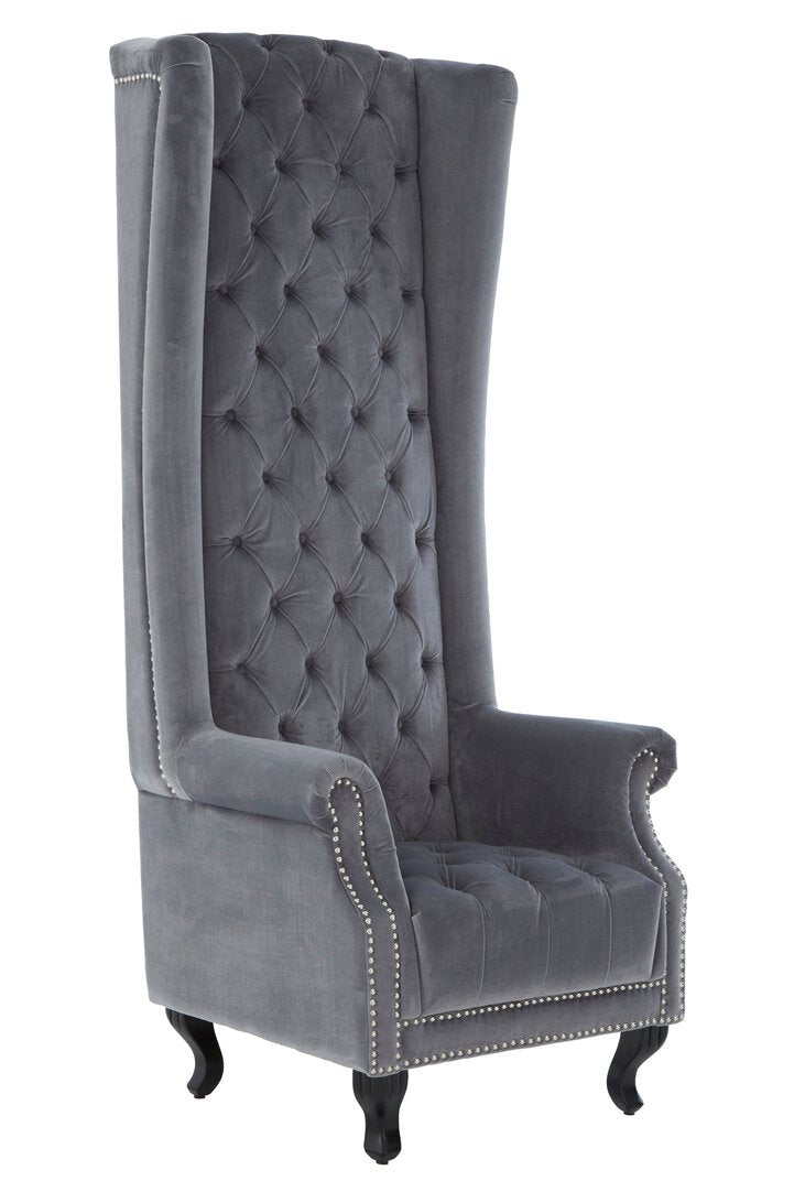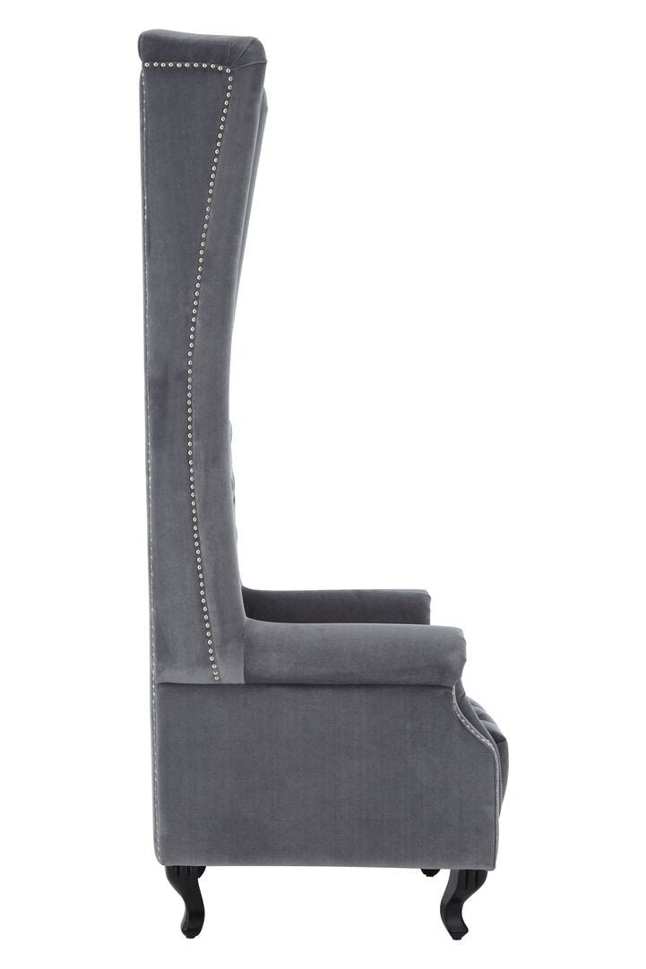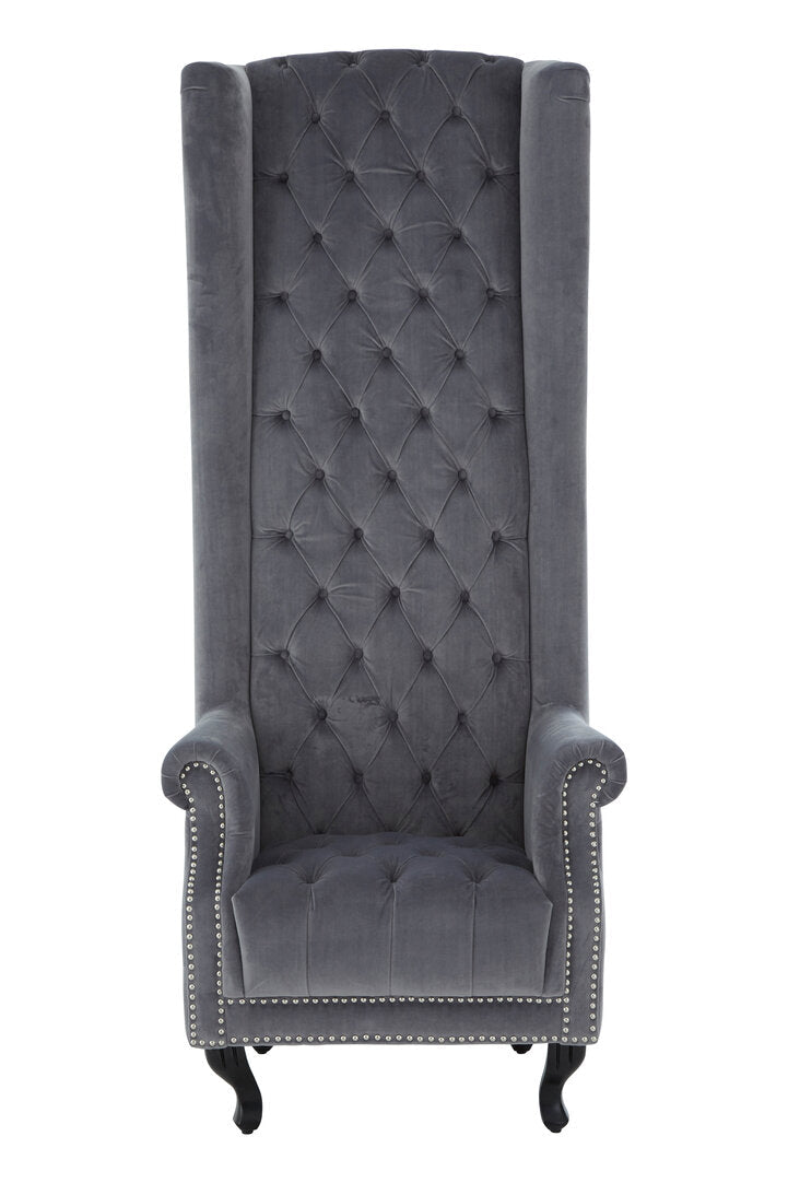 Exquisitely carved hardwood legs further enhance the traditional feel, while silver studs introduce a metallic accent to its natural look.Its tufted and buttoned seat, winged back and rolled arms all contribute to its classical look.