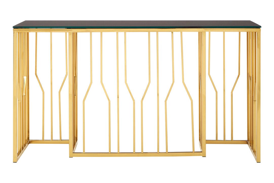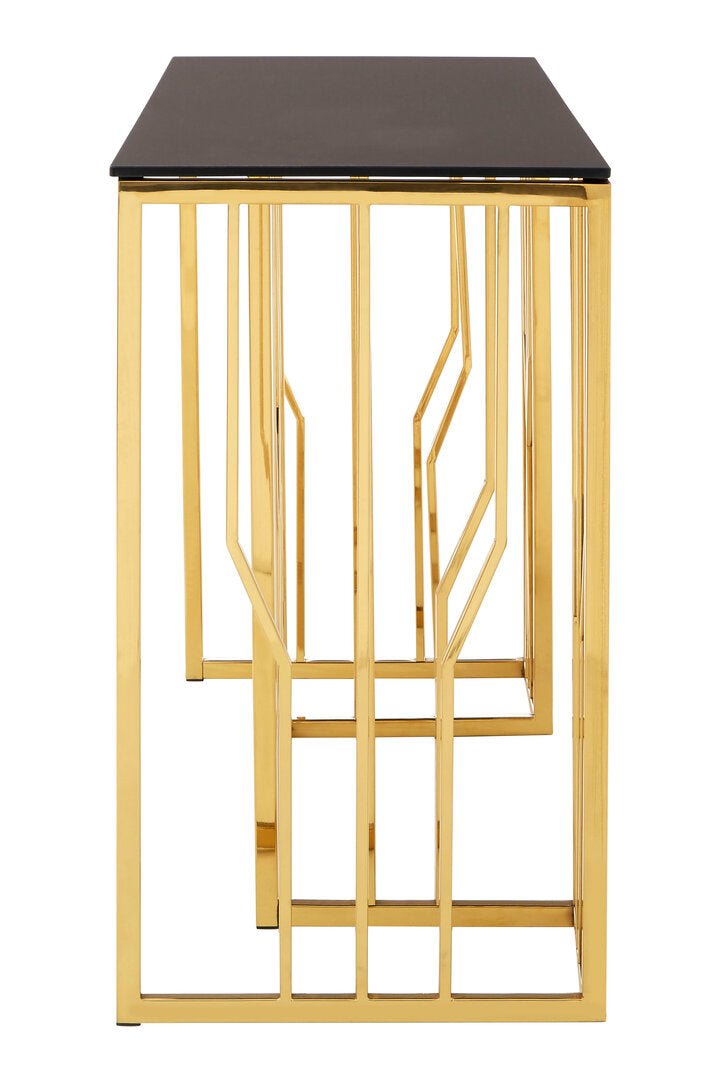 Alvaro Console Table in Gold and Black Glass Top