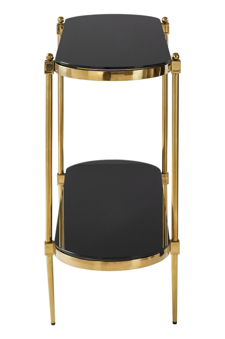 Arezzo 2 Tier Gold Console Table with Black Tempered Glass