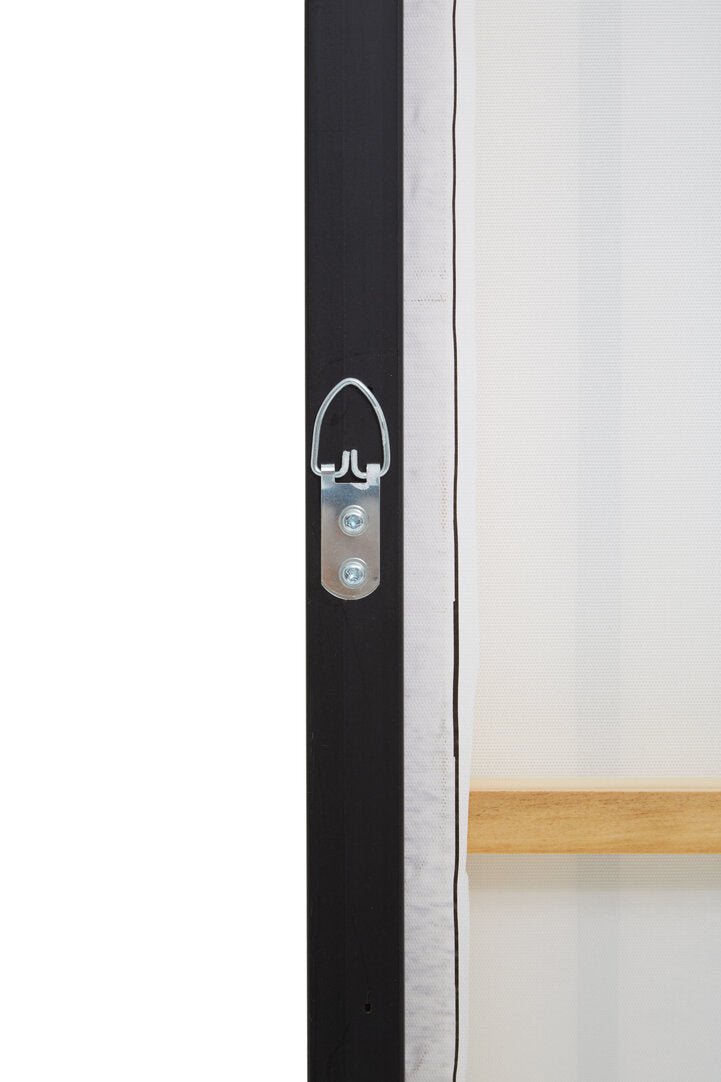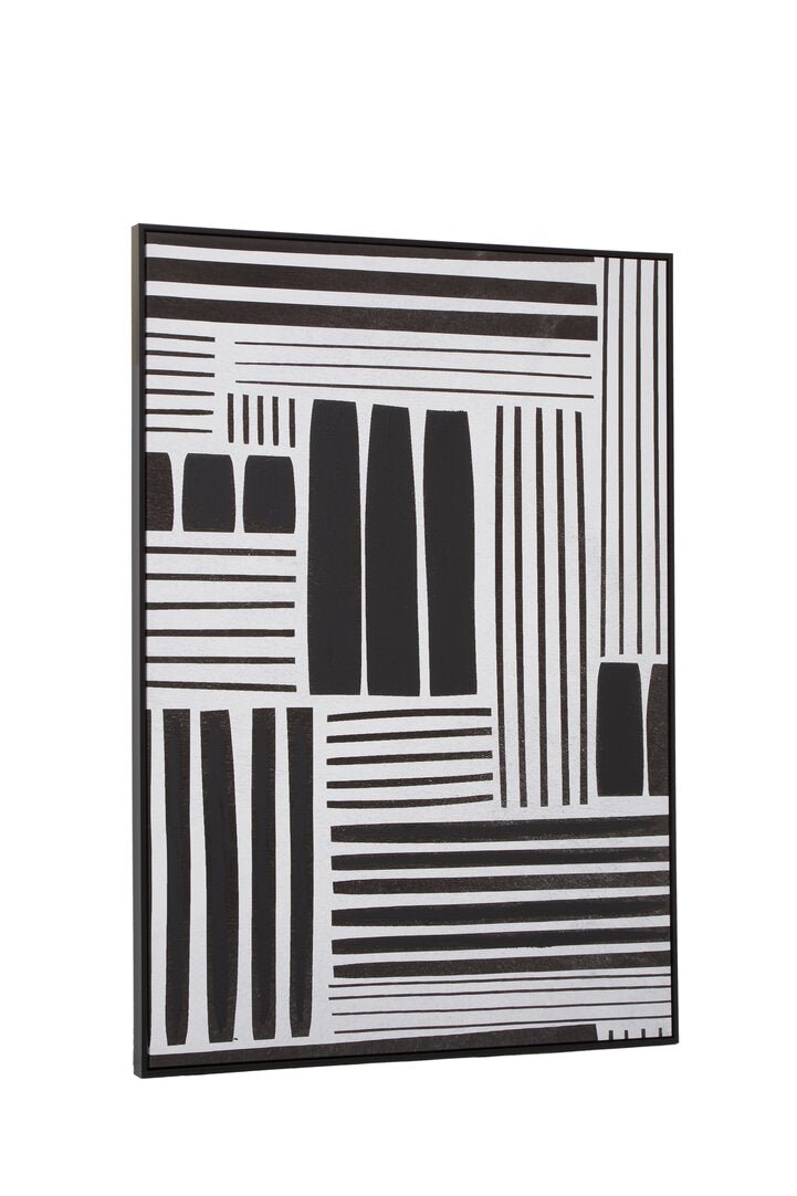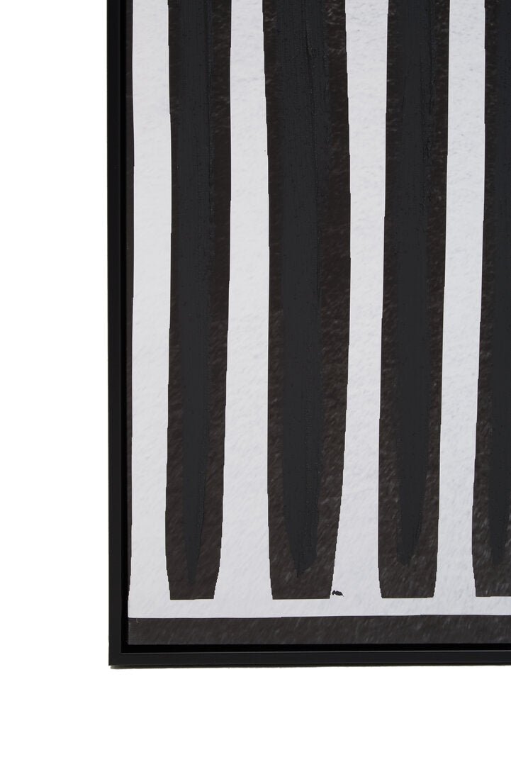 This wall art features irregular linear arrangements in a monochrome accent creating an abstract impression on the wall. The painting is neatly arranged in a sleek black rectangular wooden frame.