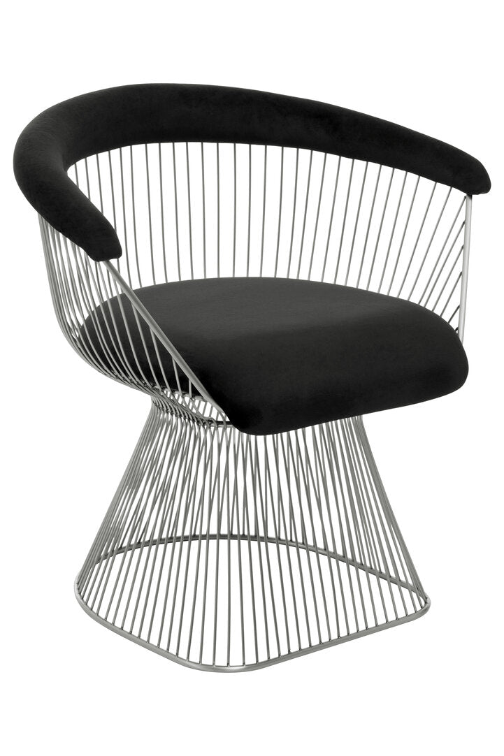 Make a statement with the Anzio chair. An hourglass-shaped brushed silver frame is matched with a decadent black velvet edge at the top and a plush black velvet seat.