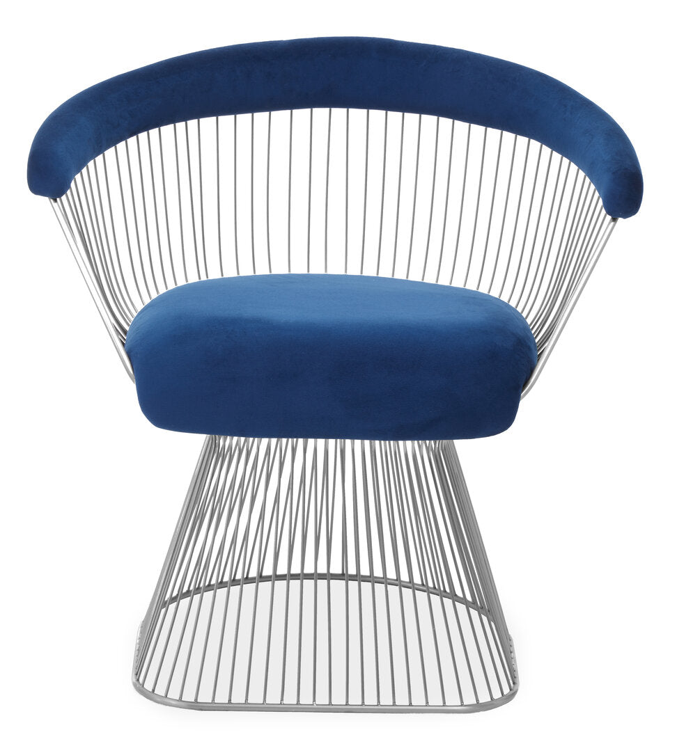 Anzio Navy Blue Velvet And Brushed Silver Chair