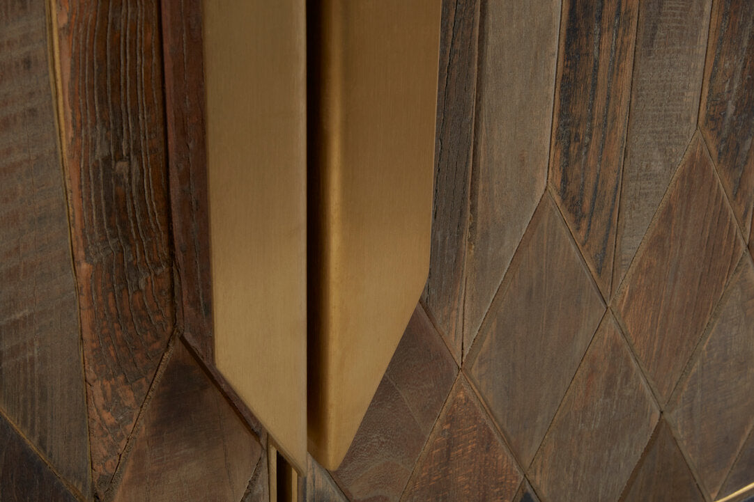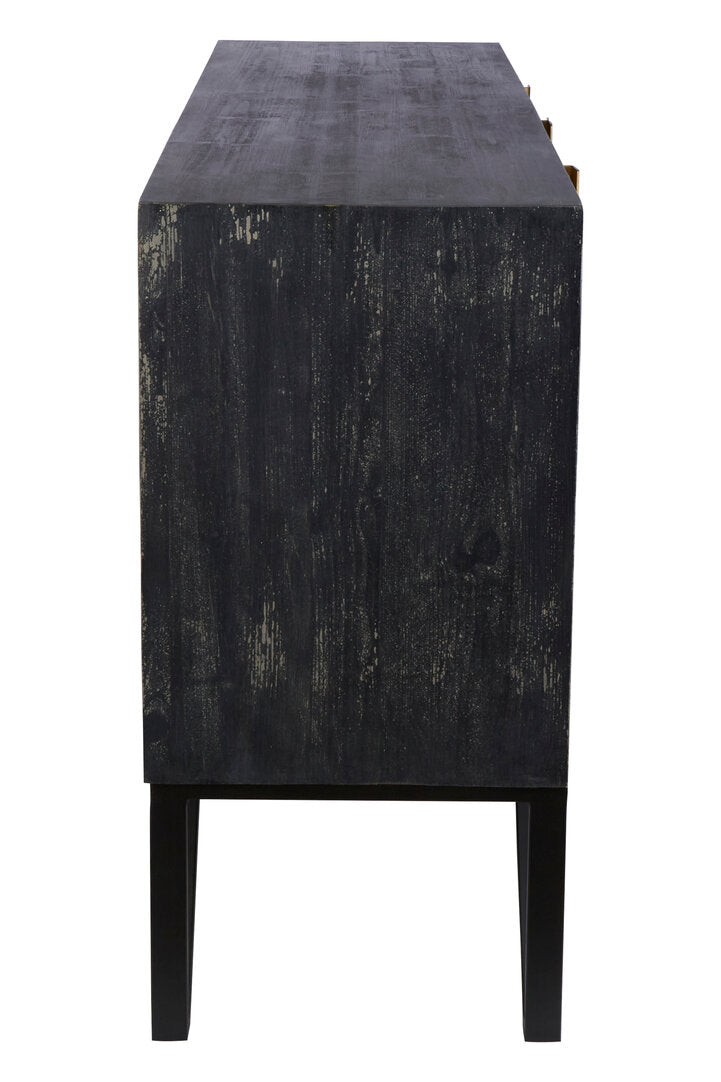 This sideboard exhibits a contemporary flair that effortlessly goes well with a variety of decors. Made from recycled pine and elm wood, this sideboard with four doors provides ample storage space, and the wooden frame sits atop a sturdy iron frame.