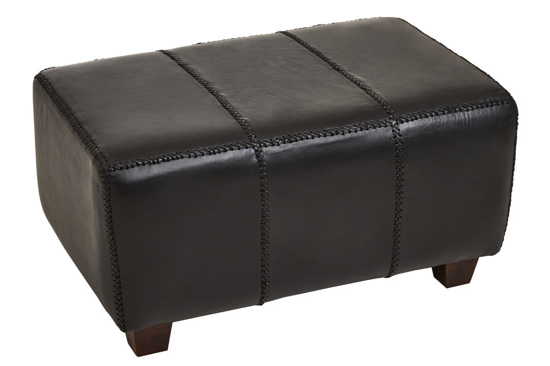 This bench has a frame built to last with sturdy construction with high density foam padding upholstered in genuine black leather. Contemporary clean line design with solid teak wood Legs, this bench offers up the perfect way to sit back and relax.