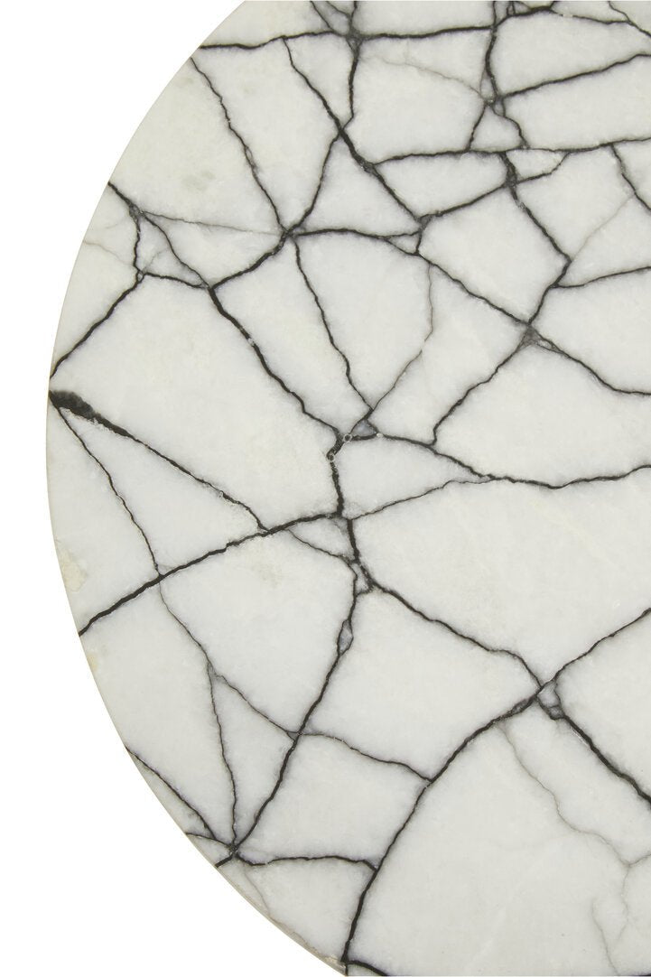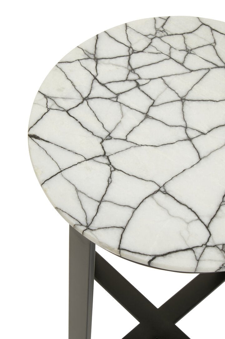 The Marmara side table pairs a sleek white marble top with natural veining and a smooth finish, set on an industrial black iron frame to create a striking modern look. Blending elegance with durability, it serves as an ideal accent piece for living rooms, bedrooms, or lounges.