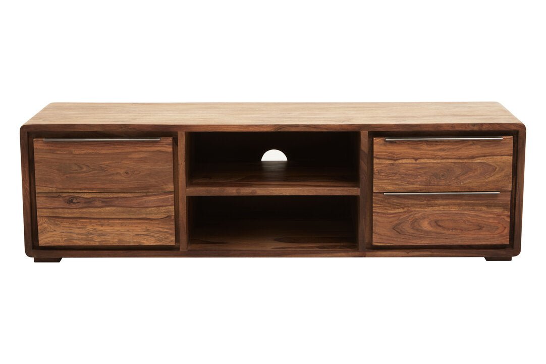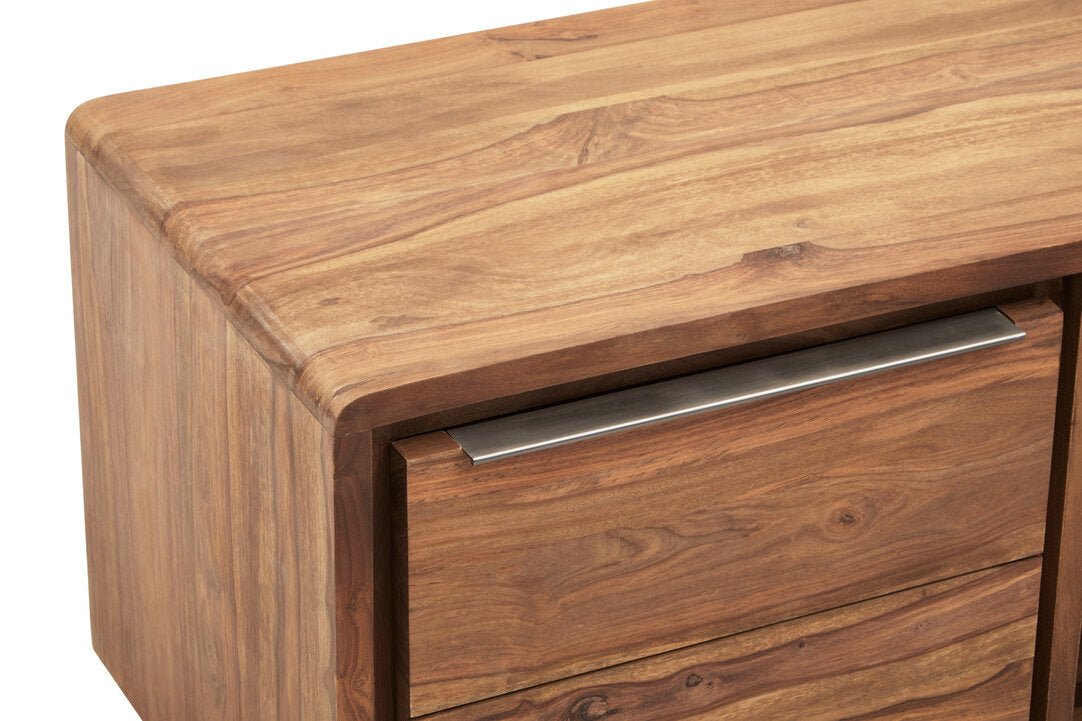 The perfect combination of functional and modern. The Surati media unit is made from sheesham and acacia wood and consists of one door and two drawers, providing ample storage space whilst looking sleek and contemporary.