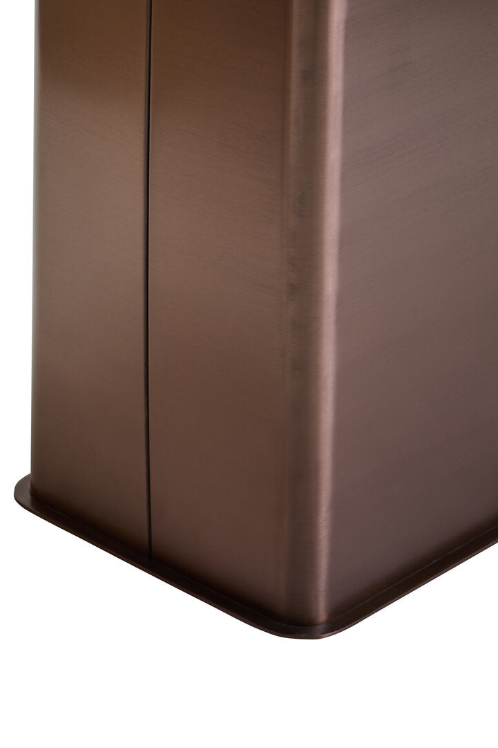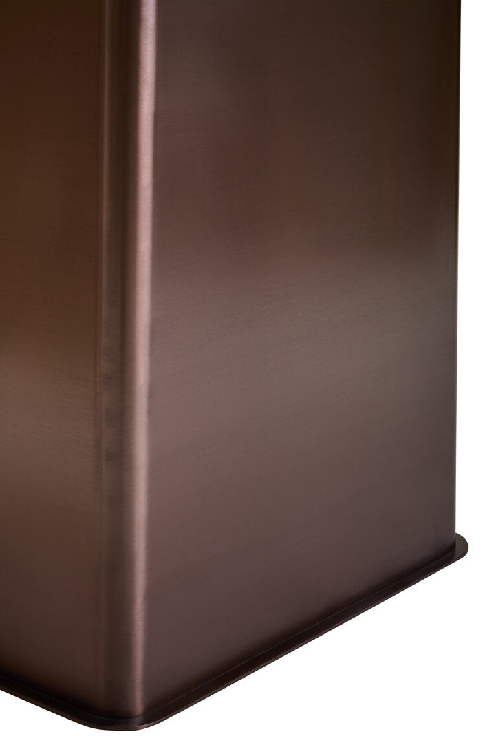 The Imperia rectangular dining table features a stylish white marble effect ceramic top, offering a durable and elegant surface. It is supported by a striking brushed bronze stainless steel base, presenting a modern and luxurious aesthetic.
