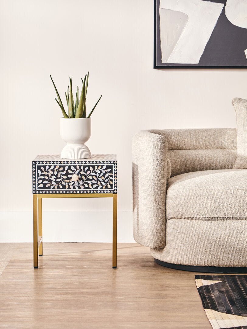 Fusion 1 Drawer Side Table with Bone Inlay