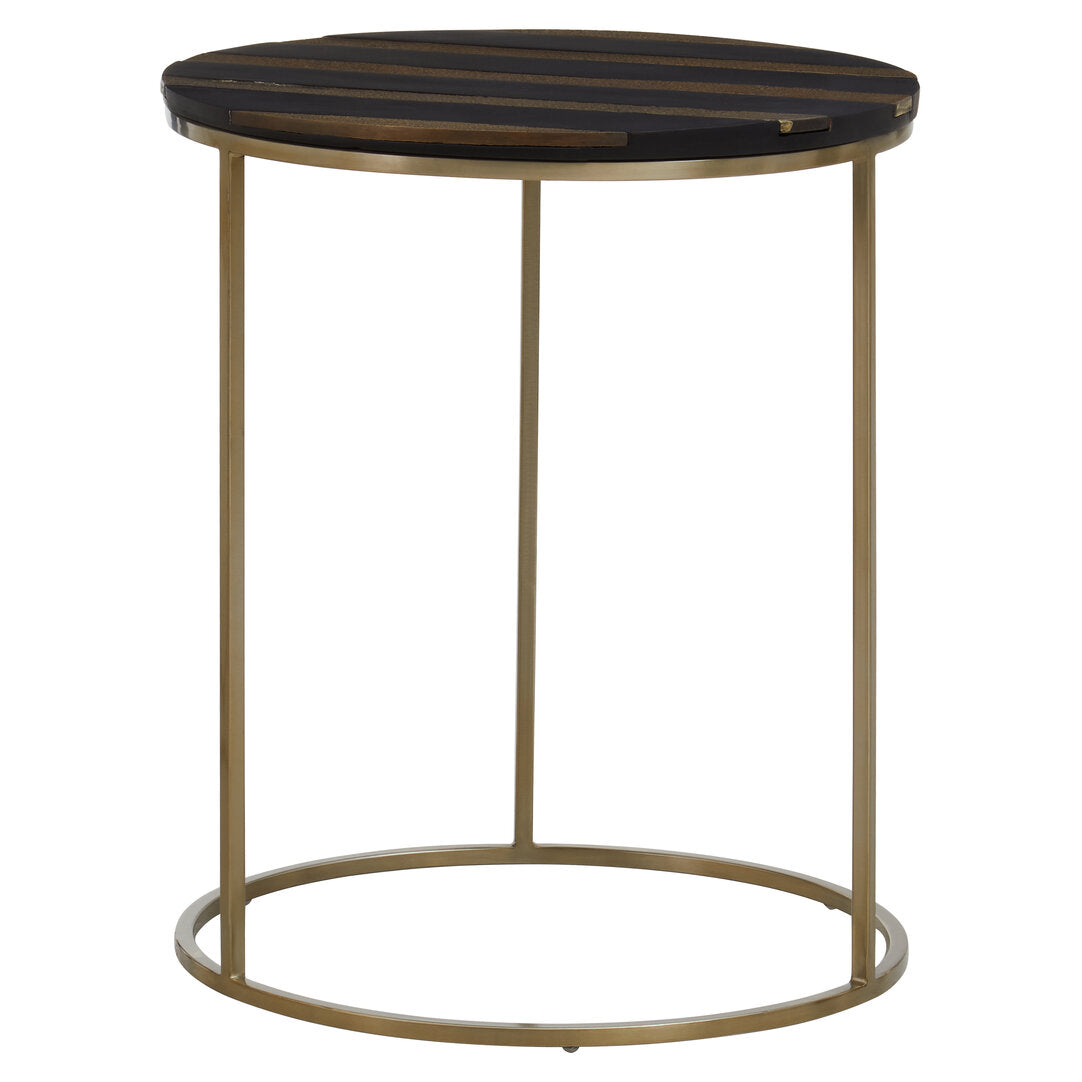 This side table is constructed from acacia wood with black and gold finished stripes adorning the top. The tabletop is supported by a sleek frame bringing an element of minimalism to the design.