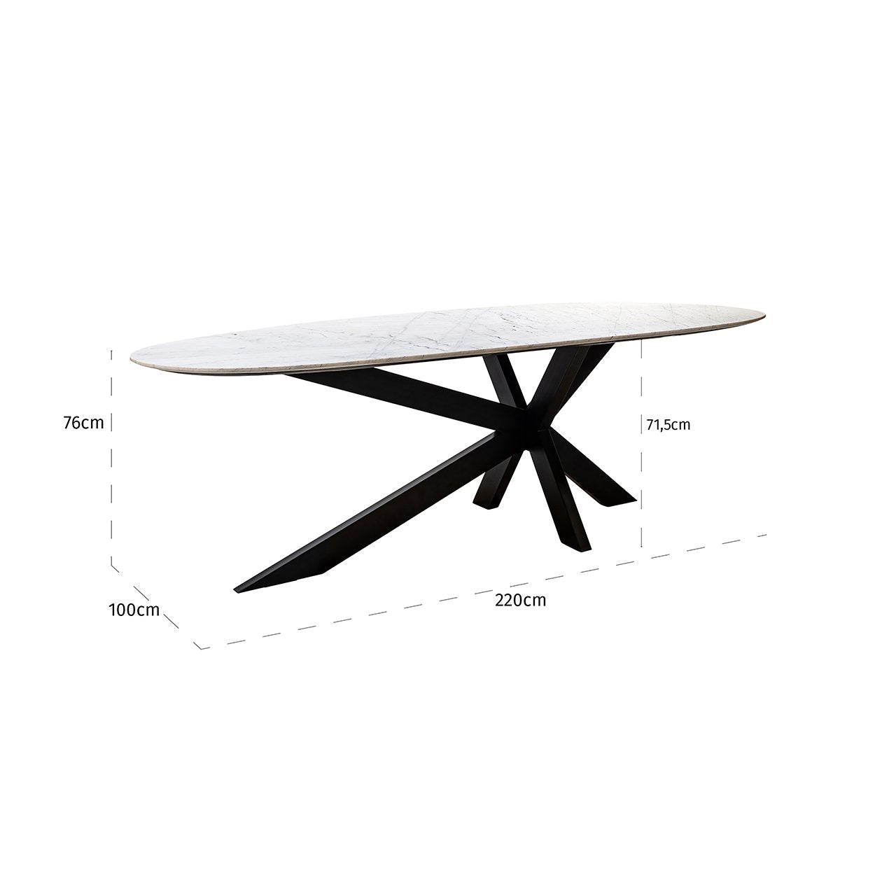 - Dimensions: W 220 cm × D 100 cm × H 76 cm