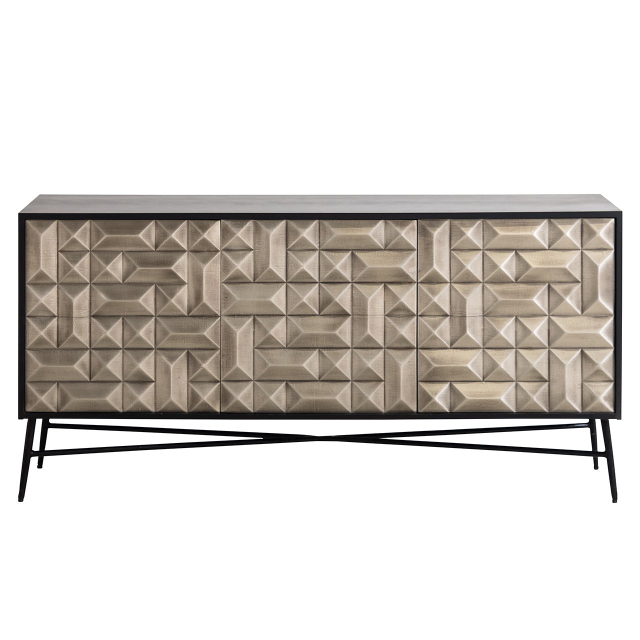 Das Sideboard Tetro ist ein stilvolles Möbelstück, das jedem Raum eine luxuriöse Ausstrahlung verleiht. In Gold- oder Silberoptionen erhältlich, strahlt dieses Sideboard ein Gefühl von Verfeinerung und Klasse aus. Das einzigartige Pyramidenmotiv auf der Vorderseite fügt eine zusätzliche Dimension des Designs hinzu, was es auffällig und doch zeitlos macht. Ein Muss für Liebhaber von eleganten und ausgezeichneten Innenräumen.