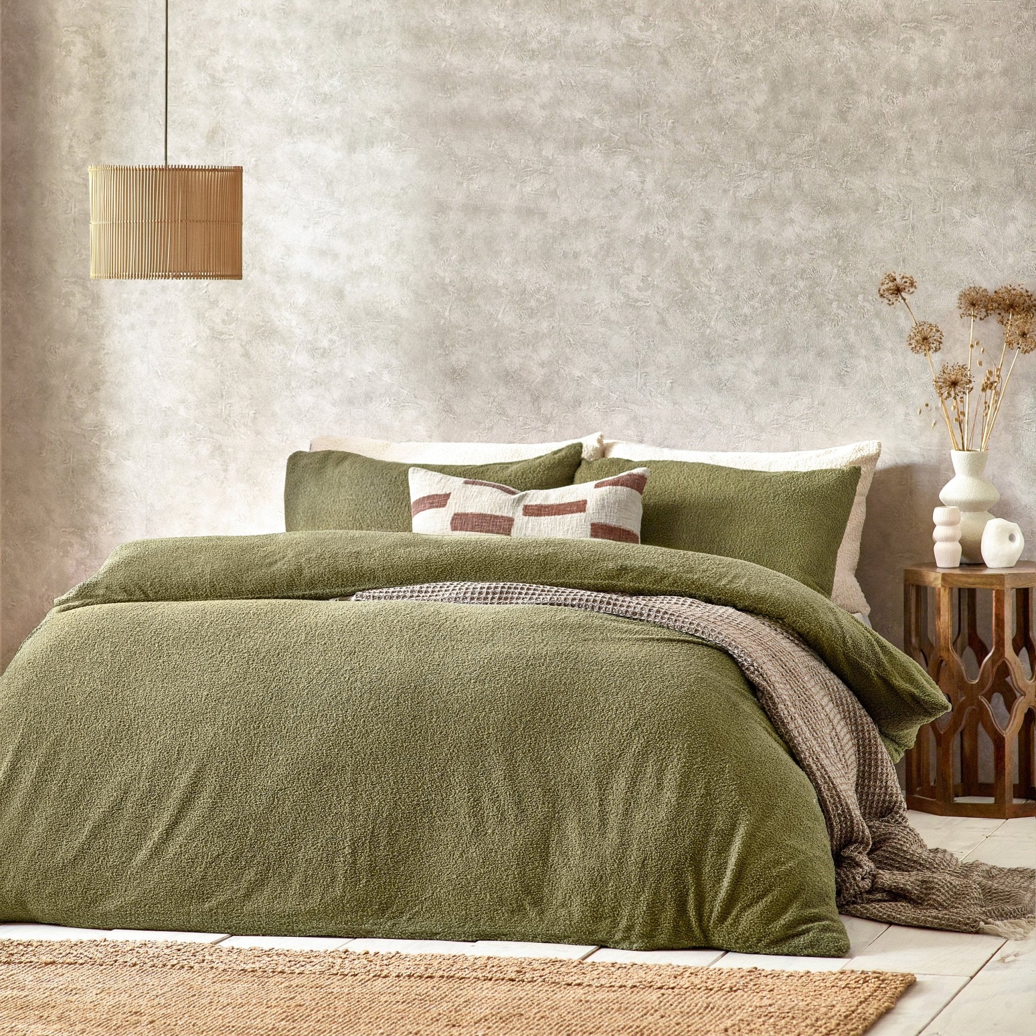 Boucle Super King Duvet Set Olive