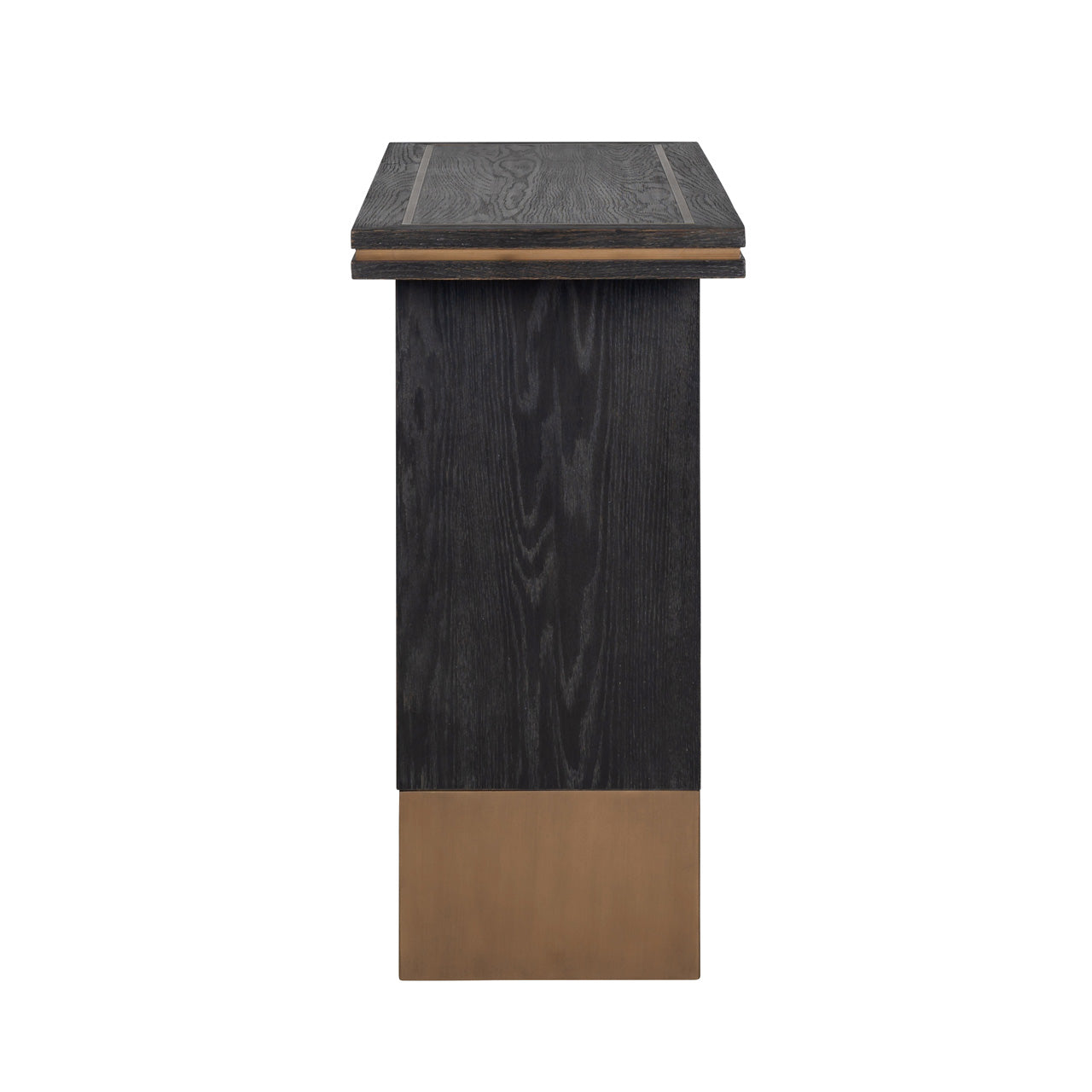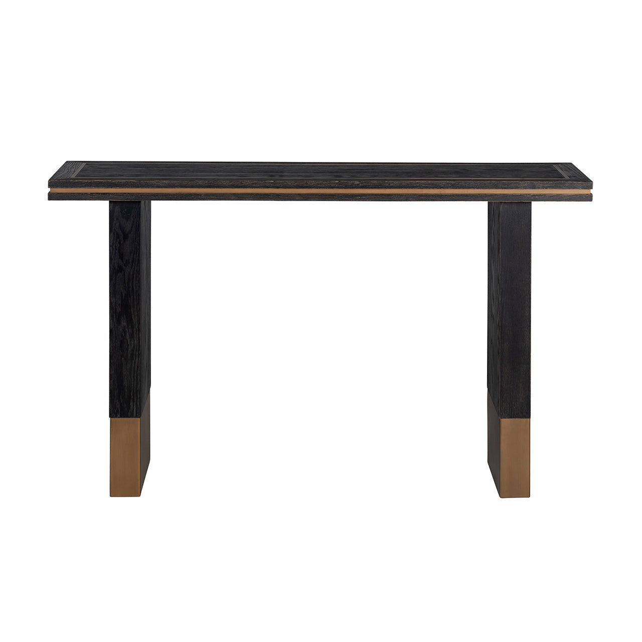 Laat je interieur glanzen met de moderne Wandtafel Hunter. Een bijzondere wandtafel gemaakt van eiken fineer en mat gouden details. Een chique aanvulling voor elke ruimte! Combineer samen met andere items uit de Hunter collectie.