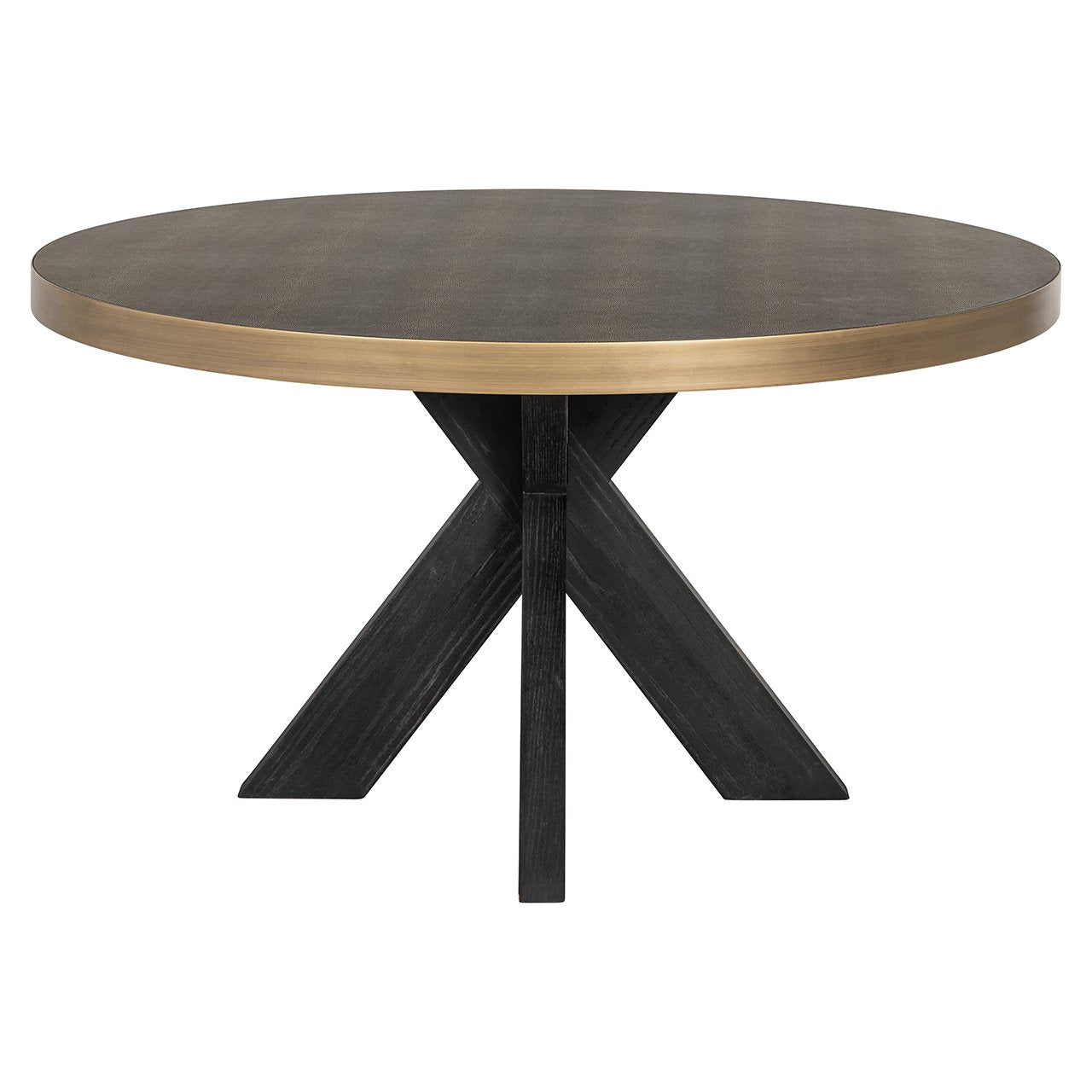 The Bloomville dining table offers a sleek design with a PU leather top and black iron legs. Available in 200 cm and 230 cm sizes, or as a round table of 140 cm. Perfect for a modern touch in your dining space.