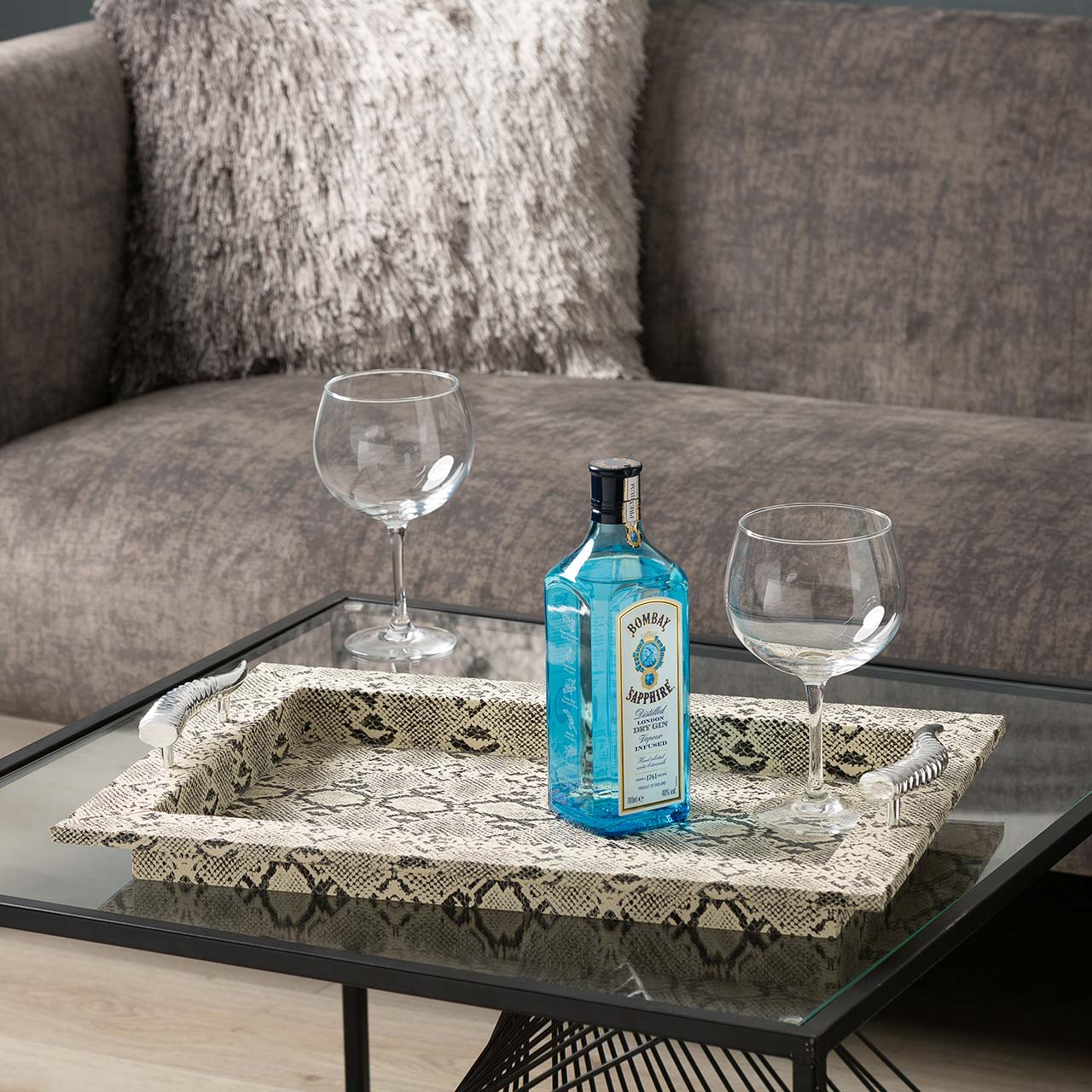 52x37 Black and White Faux Snake Leather Tray Horn Handle