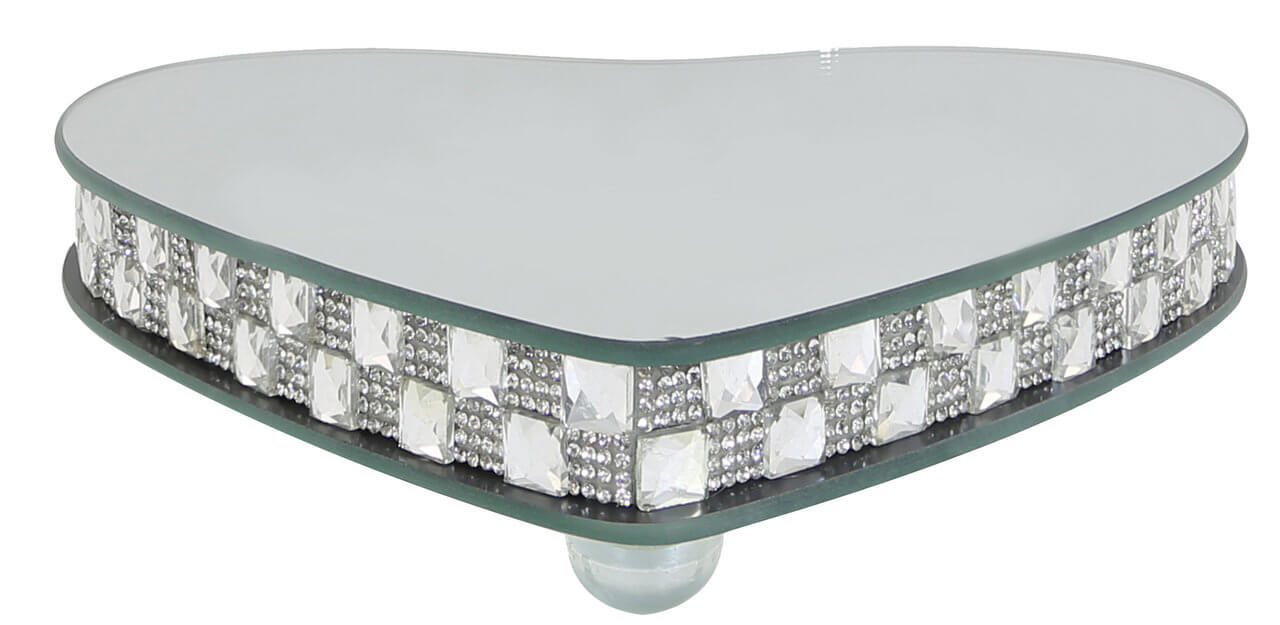 Small Mirror Heart Candle Plate With Feet Silver