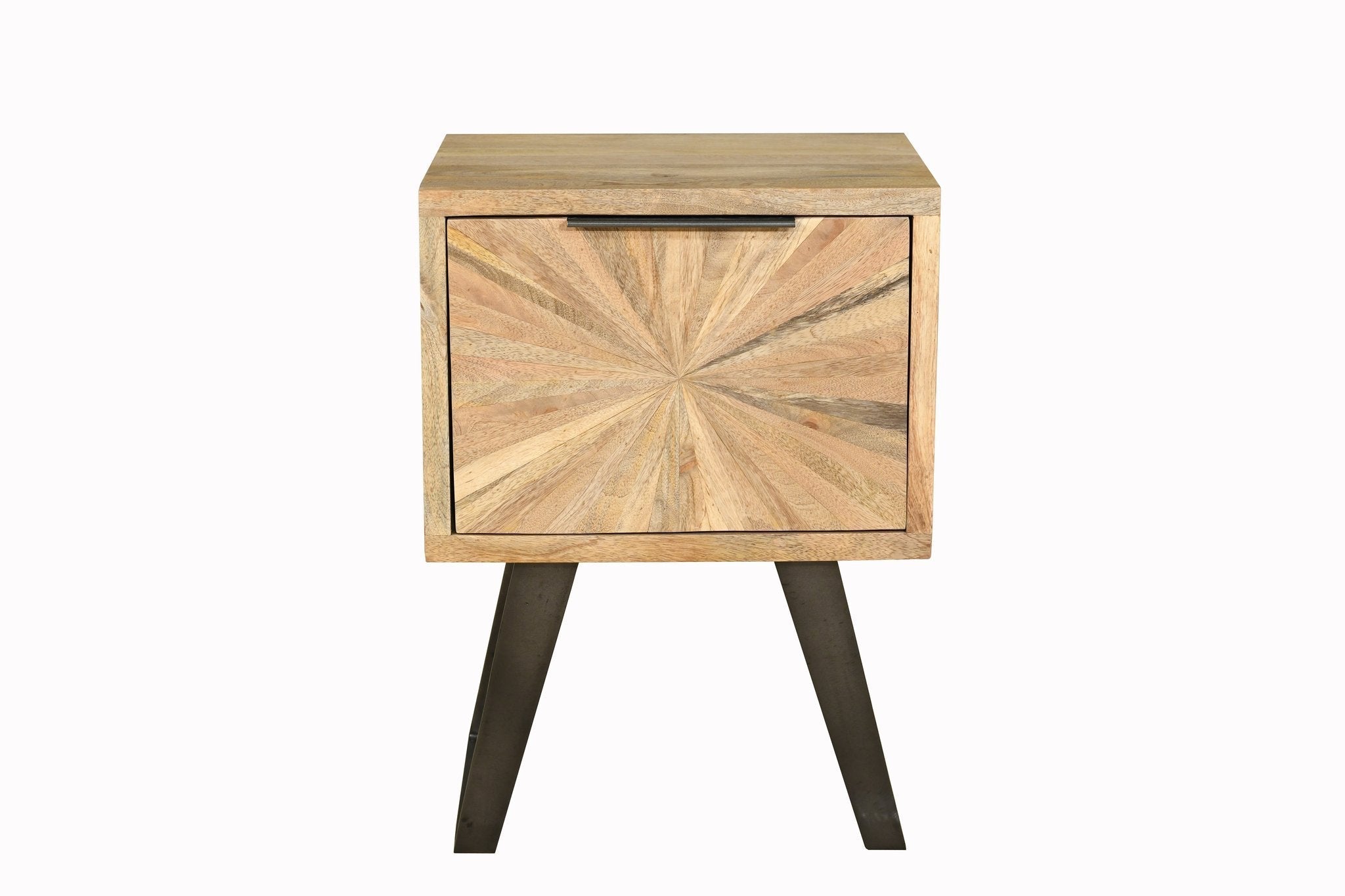 Kodi Range: Light mango wood featuring slim-line handles and a signature sunburst pattern design. Crafted with precision inlay work, each piece showcases the natural beauty and unique grain of mango wood.