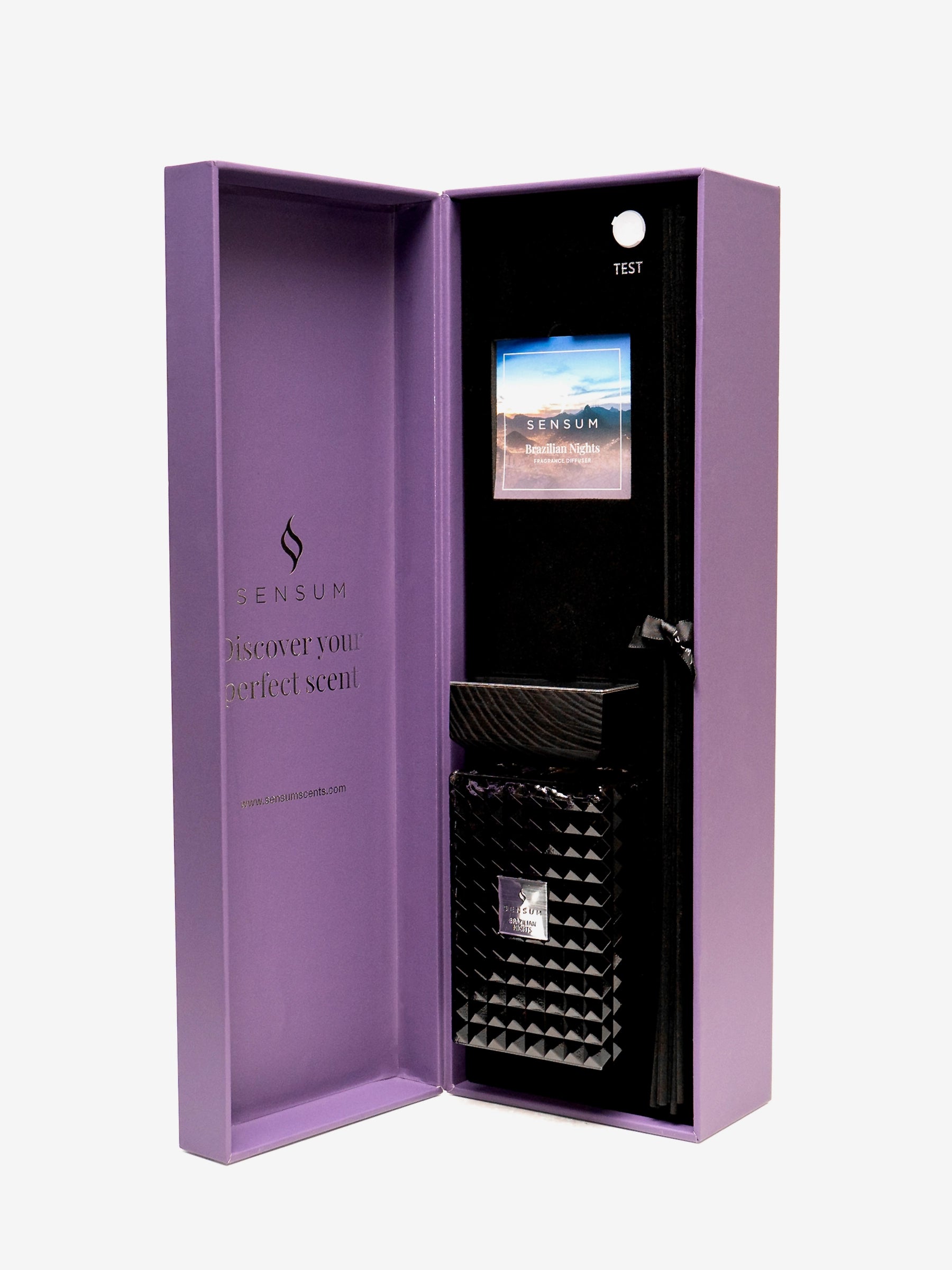 • Beautiful purple and silver foil branding • Scent Card