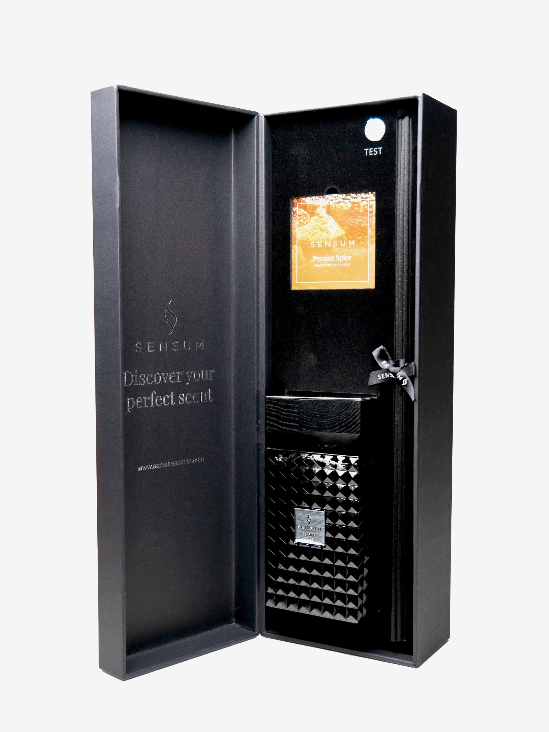 • Beautiful black and silver foil branding • Scent Card