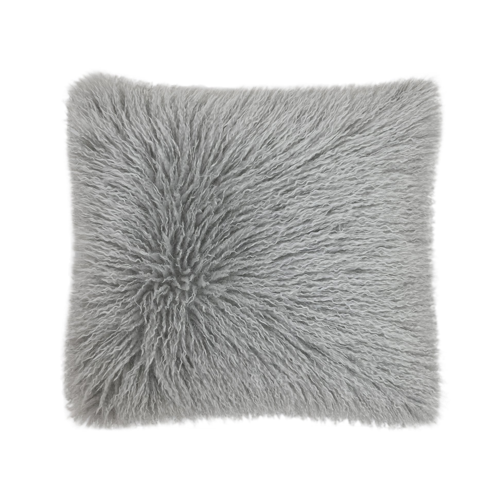 TEXTURED FAUX MONGOLIAN CUSHION GREY 50 X 50