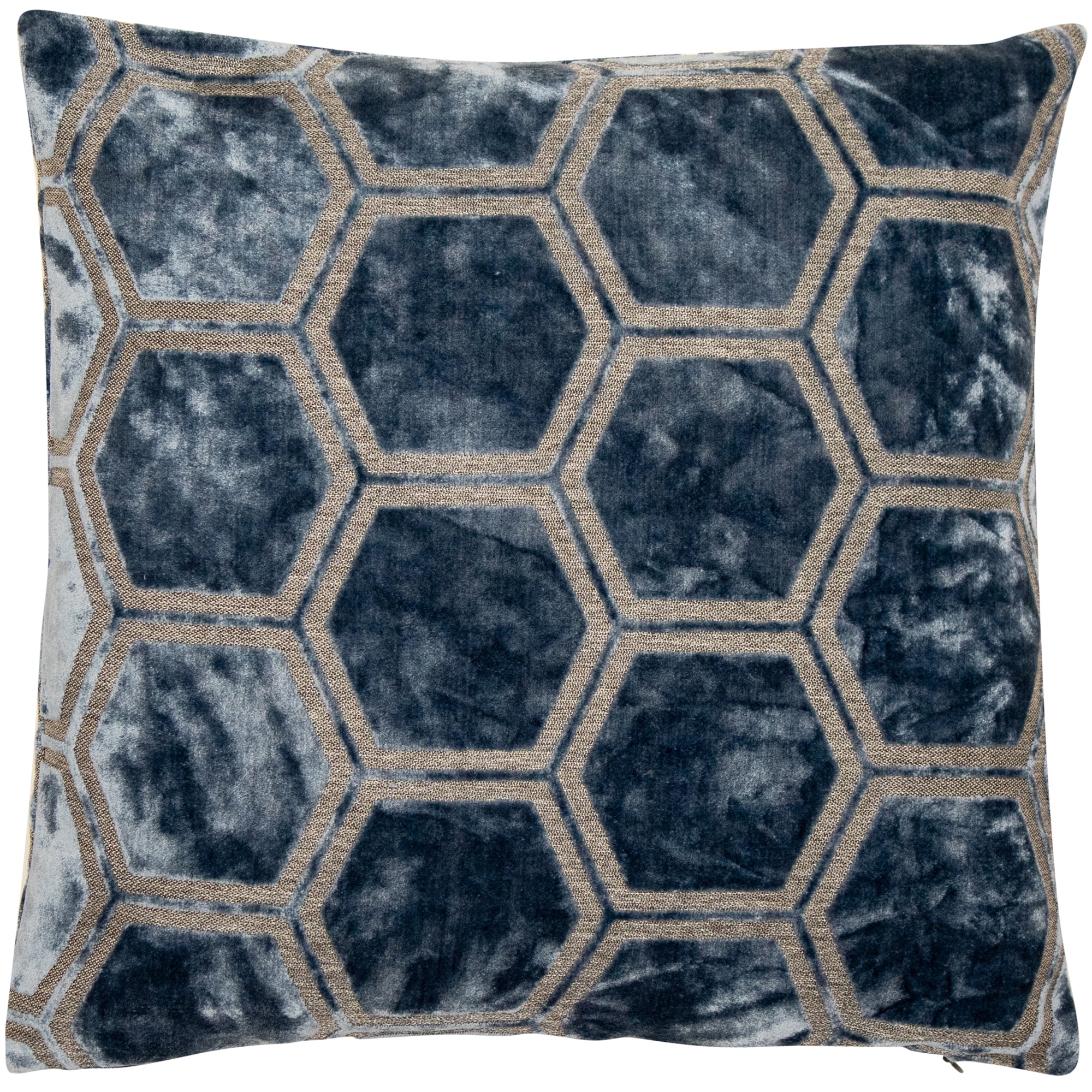 Large Hexagon Cut Velvet Blue 56x56 by Malini is a cushion chosen for its showroom-ready finish and timeless appeal.
