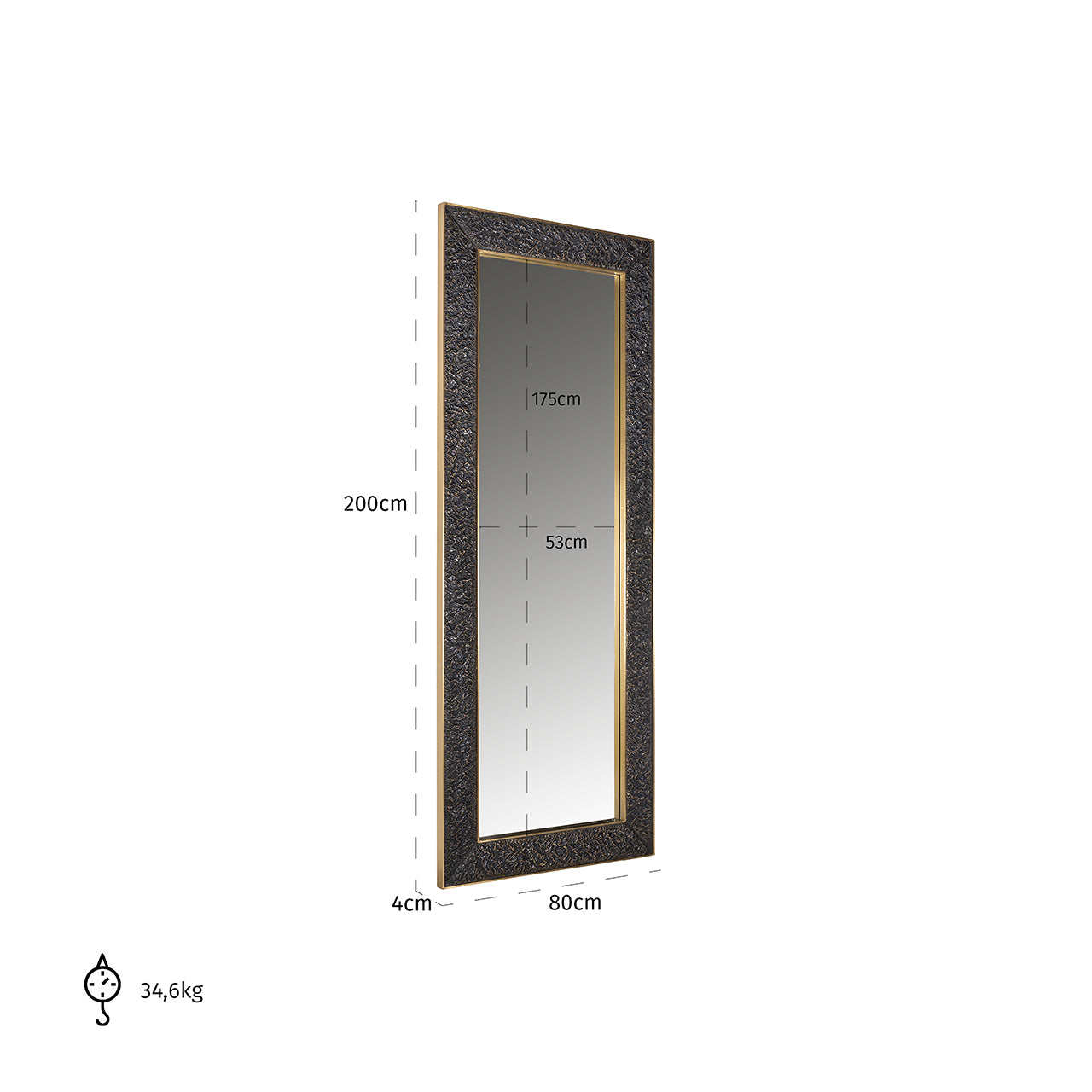 Whether you hang it horizontally or vertically, mirror Daveen (80x200 cm) is an eye-catcher in any interior. The vintage style adds brightness and spaciousness to your living room, office or hallway. Mirrors are timeless and versatile and can be combined with many different interior decorating styles. Made of MDF and brass.