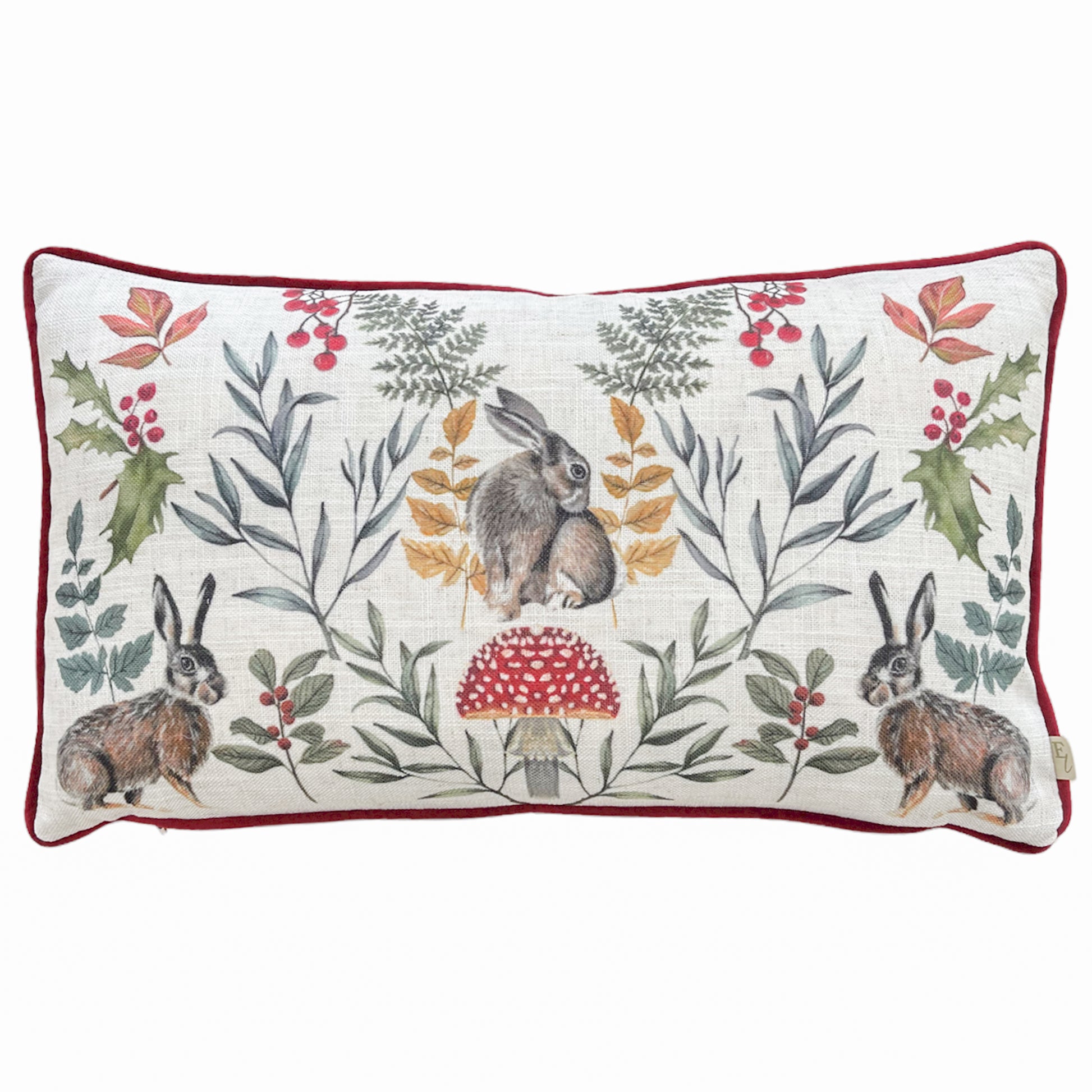 MIRRORED HARE 30X50 FEATHER FILLED CUSHION BURGUNDY