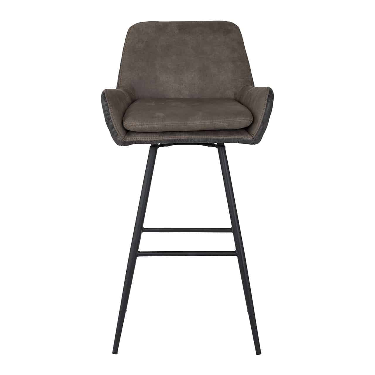 Barstoel Linsey is draaibaar en uitgevoerd in PU leder, polyester en zwarte stalen poten. Het ruitmotief op deze stoel geeft zowel een industriele als klassieke uitstraling.