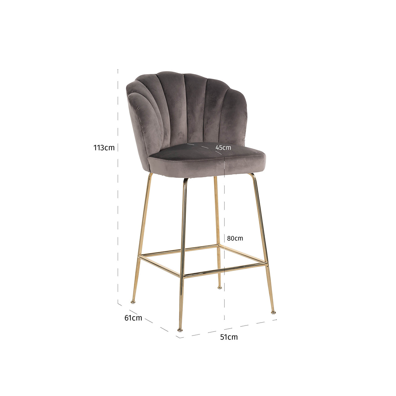 Bar stool Pippa Stone Velvet / gold in shell model gives every room a glamorous effect with an edgy twist! Available in multiple colors.