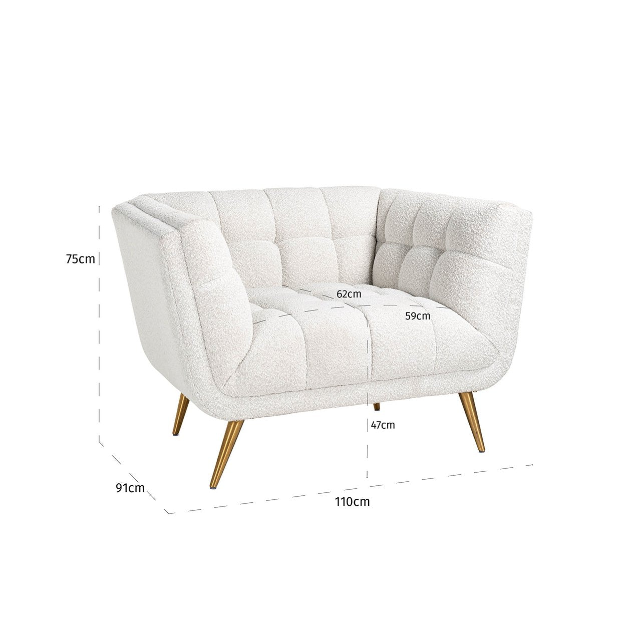 Product: Lounge chair Huxley White Bouclé / brushed gold (Copenhagen 900 Bouclé White)
